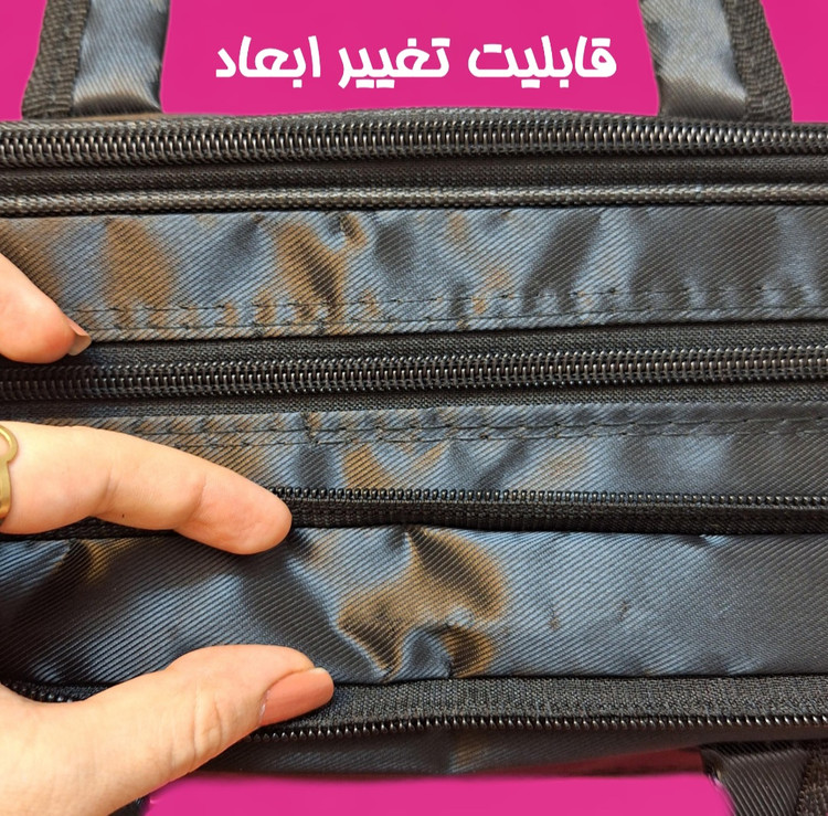 دارای ۲ محفظه اصلی، ۳جیب خارجی، دارای زیپ تغییر ابعاد