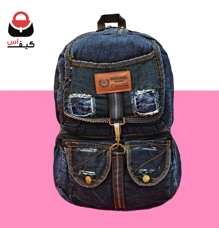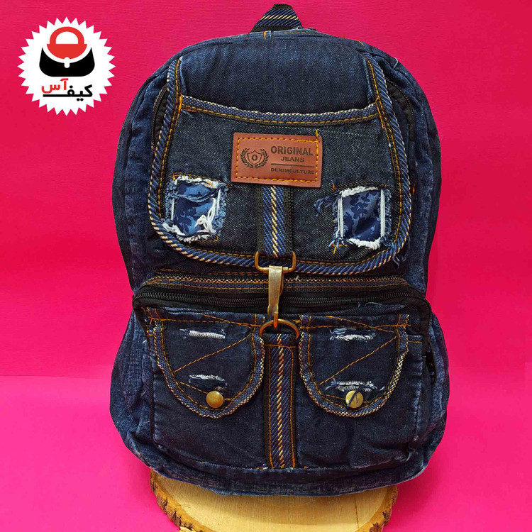 کوله پشتی لی جین شیک مدرسه ای رنگ آبی پررنگ (سورمه ای) مدل زاپدار با قیمت تخفیف خورده